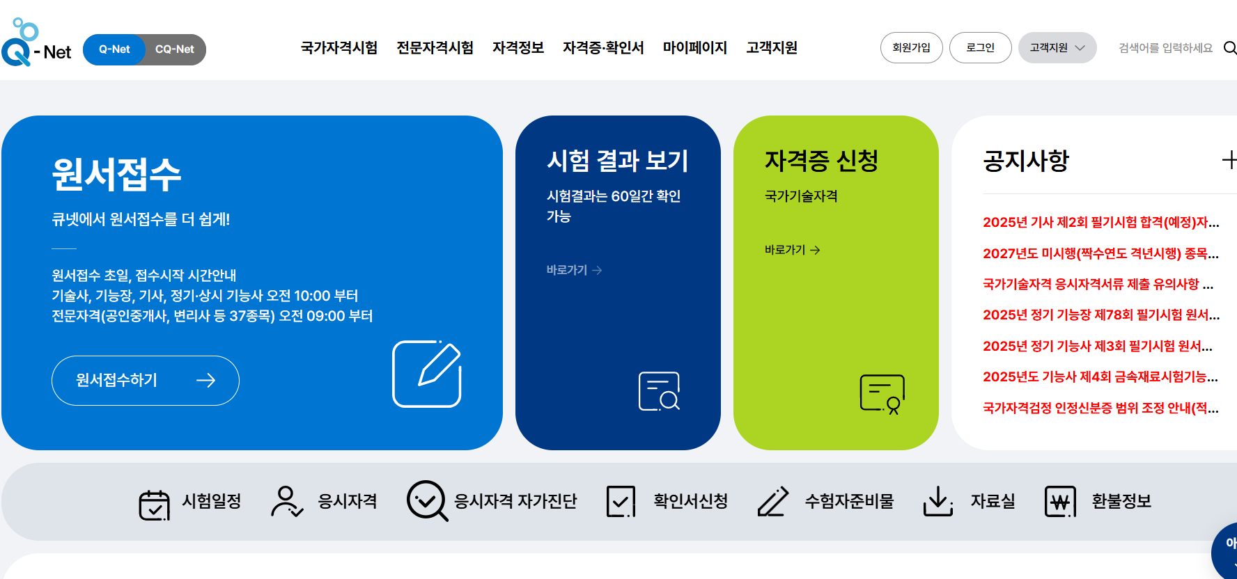국가기술자격 시험 사이트인 ‘큐넷(Q-net)’에서 확인할 수 있어요.